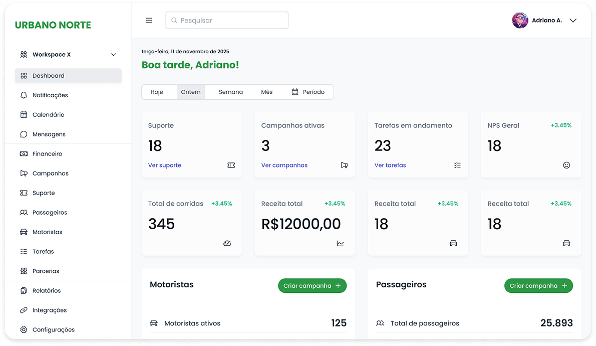 Gerencie relatórios de campanhas para motoristas e passageiros. Descubra quais promoções funcionam, otimize bônus e aumente a retenção de seus melhores motoristas.